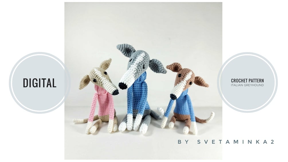 Italian Greyhound Crochet Pattern | Amigurumi Sighthound (Greyhound, Whippet, Galgo) in Fake Sweater
