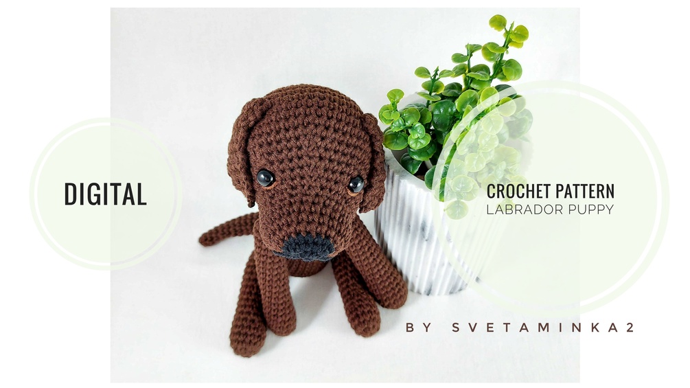 Labrador crochet pattern to make adorable amigurumi puppy. The pattern (PDF instant download file) is in English (US terms), very detailed instructions and tips with lots of photos for each step.