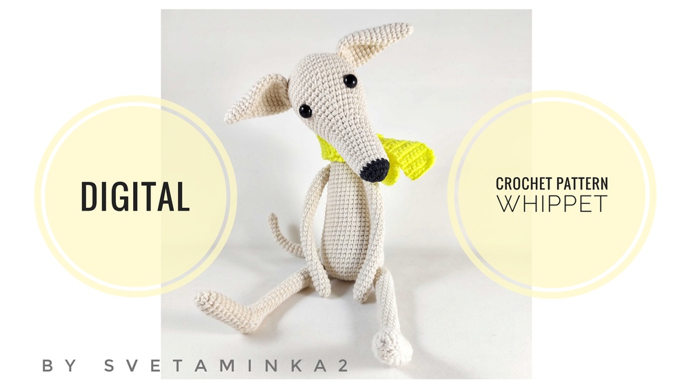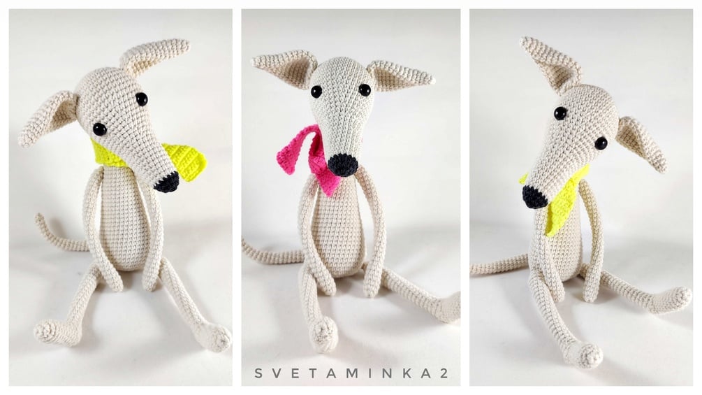 Whippet Crochet Pattern to make amigurumi graceful dogs like Greyhound, Italian Greyhound, Galgo, Sighthound, Lurcher (the original pattern by svetaminka2).
